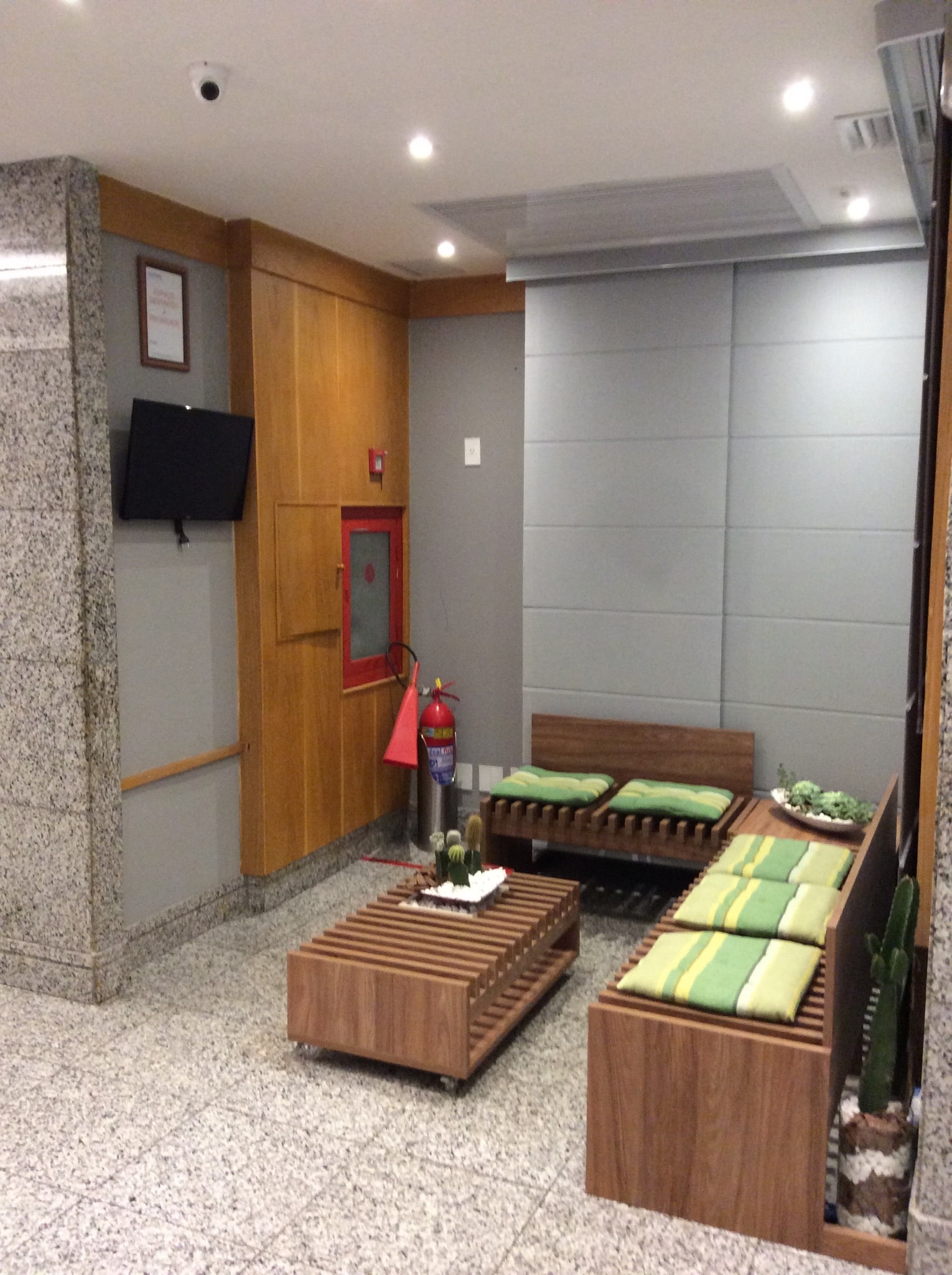 Projeto de mídia própria nos elevadores, hall e sala de espera.